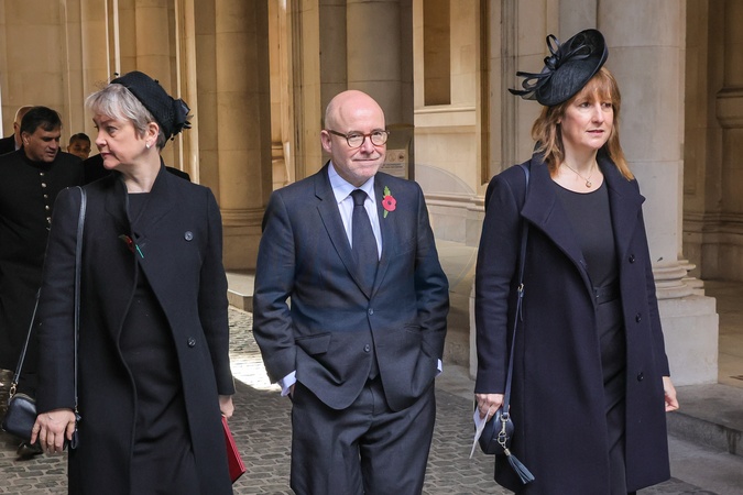 Rachel Reeves, Yvette Cooper, Richard Hermer on Remembrance Sunday in Downing Street, London, UK
