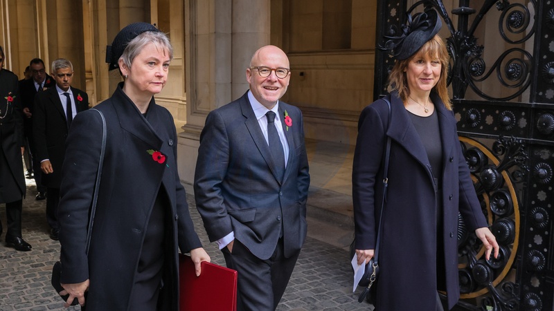 Rachel Reeves, Yvette Cooper, Richard Hermer on Remembrance Sunday in Downing Street, London, UK