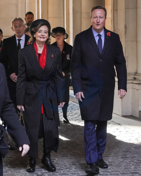 London, UK. 09th Nov, 2025. Sir Tony Blair, former Labour Prime Minister and wife Lady Cherie Blair, with former Prime Minister David Cameron. Politicians, including the PM, many former Prime Ministers and dignitaries, are seen walking through Downing Street on the way to and from attending the Remembrance Sunday ceremony on Whitehall in Westminster., Credit:Imageplotter / Avalon