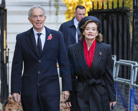London, UK. 09th Nov, 2025. Sir Tony Blair, former Labour Prime Minister and wife Lady Cherie Blair. Politicians, including the PM, many former Prime Ministers and dignitaries, are seen walking through Downing Street on the way to and from attending the Remembrance Sunday ceremony on Whitehall in Westminster., Credit:Imageplotter / Avalon
