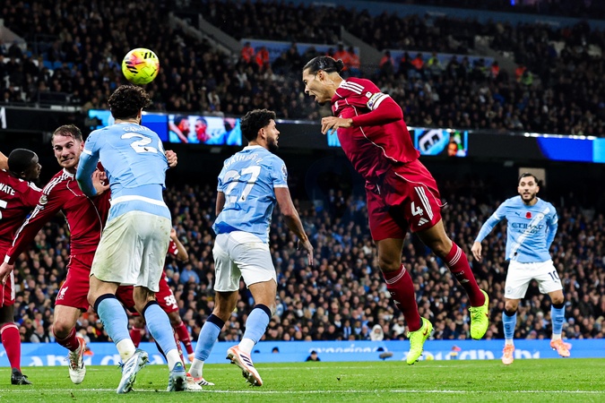 Virgil van Dijk of Liverpool scores goal but ruled offside during the Premier League match Manchester City vs Liverpool at Etihad Stadium, Manchester, United Kingdom, 9th November 2025, Credit:Mark Cosgrove/News Images / Avalon