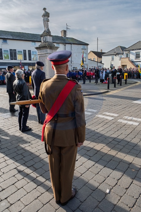 Remembrance Sunday march , with wreath laying and church service at St Andrew's church, Soham, Cambridgeshire, UK.