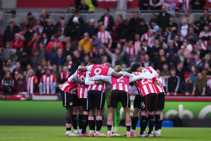 Brentford players huddle during the Premier League match Brentford vs Newcastle United at The Gtech Community Stadium, London, United Kingdom, 9th November 2025, Credit:Harvey Murphy/News Images / Avalon
