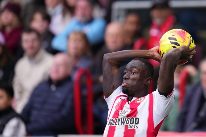 Michael Kayode of Brentford takes long throw in during the Premier League match Brentford vs Newcastle United at The Gtech Community Stadium, London, United Kingdom, 9th November 2025, Credit:Harvey Murphy/News Images / Avalon