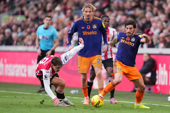 Sandro Tonali of Newcastle United during the Premier League match Brentford vs Newcastle United at The Gtech Community Stadium, London, United Kingdom, 9th November 2025, Credit:Harvey Murphy/News Images / Avalon