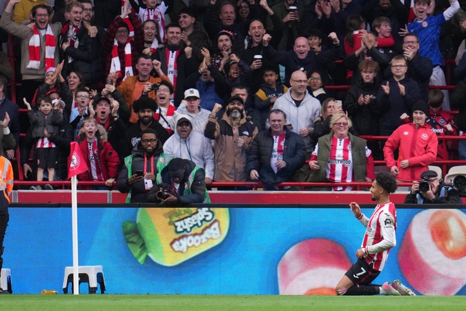 Kevin Schade of Brentford celebrates goal during the Premier League match Brentford vs Newcastle United at The Gtech Community Stadium, London, United Kingdom, 9th November 2025, Credit:Harvey Murphy/News Images / Avalon