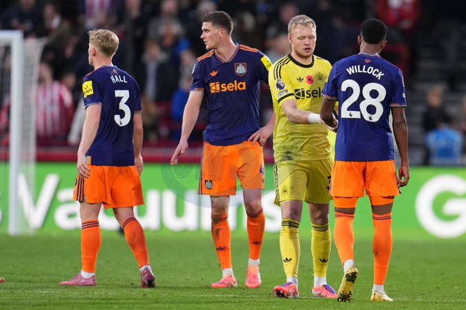 Newcastle players at full time during the Premier League match Brentford vs Newcastle United at The Gtech Community Stadium, London, United Kingdom, 9th November 2025, Credit:Harvey Murphy/News Images / Avalon