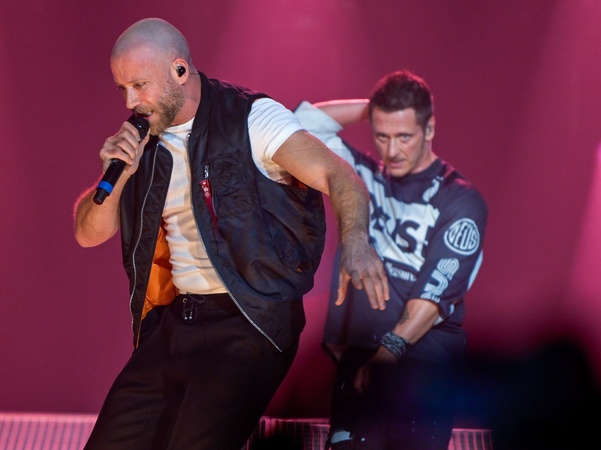 Members of 1990's boyband Five (Scott Robinson, Abz Love, Sean Conlon, Jason "J" Brown and Ritchie Neville ) perform for the first time in 25 years onstage at Utilita Arena Birmingham, Credit:Jules Annan / Avalon