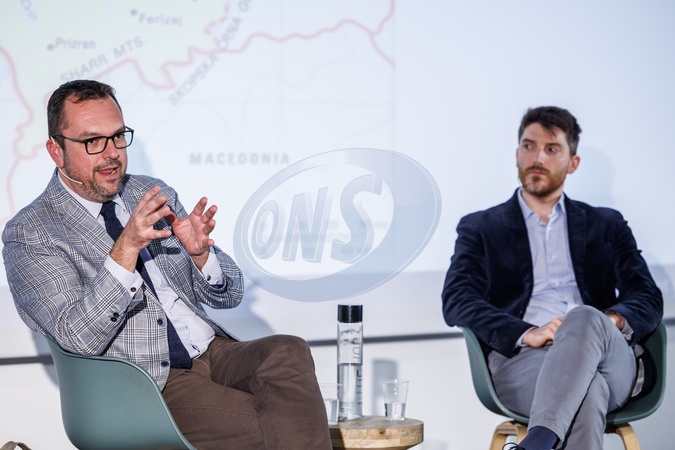 November 8, 2025, Rome, Limes School, Alumnia conference. Pictured are Laris Gaiser and Federico Petroni. Rome, Italy 08 November 2025, Credit:Francesco Fotia / Avalon