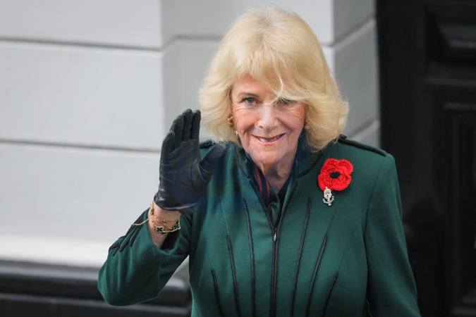 London, UK. 11th Nov, 2025. Her Majesty smiles and waves at members of the public. Queen Camilla arrives by Train into Paddington Station and joins 'Poppies for Paddington' the Commemorations on Armistice Day. 'Poppies to Paddington' is an annual commemoration. Poppy wreaths from around the GWR network are collected by designate trains, arriving into Paddington station before 1100, followed by a 2 minute silence and commemorative proceedings., Credit:Imageplotter / Avalon