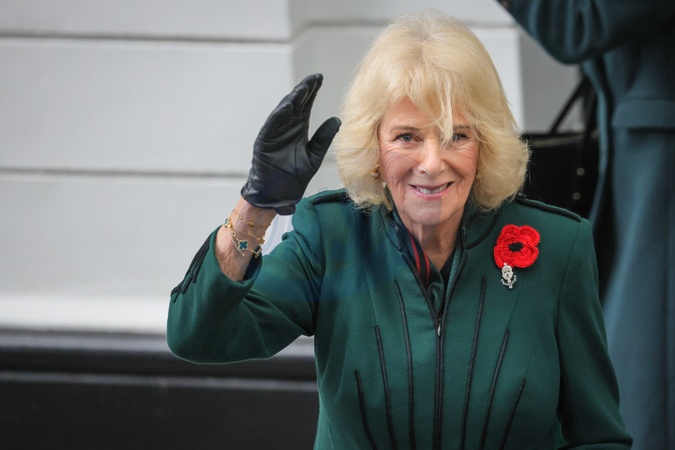 London, UK. 11th Nov, 2025. Her Majesty smiles and waves at members of the public. Queen Camilla arrives by Train into Paddington Station and joins 'Poppies for Paddington' the Commemorations on Armistice Day. 'Poppies to Paddington' is an annual commemoration. Poppy wreaths from around the GWR network are collected by designate trains, arriving into Paddington station before 1100, followed by a 2 minute silence and commemorative proceedings., Credit:Imageplotter / Avalon
