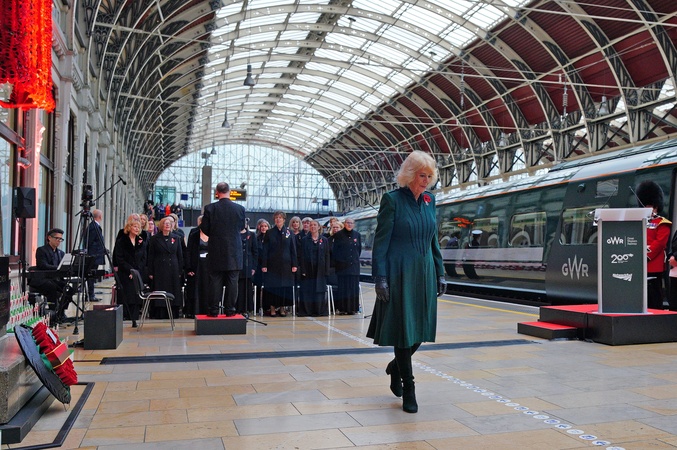 Queen Camilla lays a wreath at London Paddington train station as part of the Great Western Railway 'Poppies to Paddington' event to mark Armistice Day. Picture date: Tuesday November 11, 2025., Credit:Ben Birchall / Avalon