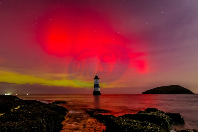 Northern Lights also know as the Aurora Borealis shine and dance over Penmon Lighthouse, Penmon, on Anglesey, United Kingdom, 12th November 2025, Credit:Mark Cosgrove/News Images / Avalon