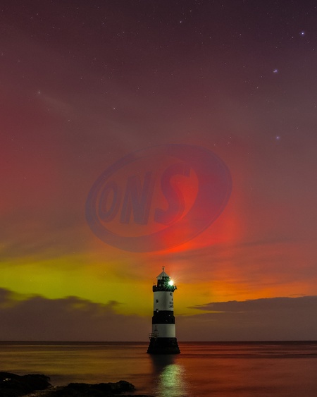 Northern Lights also know as the Aurora Borealis shine and dance over Penmon Lighthouse, Penmon, on Anglesey, United Kingdom, 12th November 2025, Credit:Mark Cosgrove/News Images / Avalon