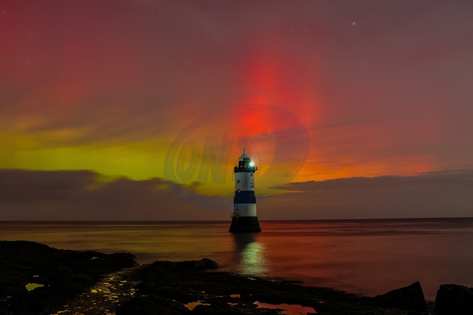 Northern Lights also know as the Aurora Borealis shine and dance over Penmon Lighthouse, Penmon, on Anglesey, United Kingdom, 12th November 2025, Credit:Mark Cosgrove/News Images / Avalon