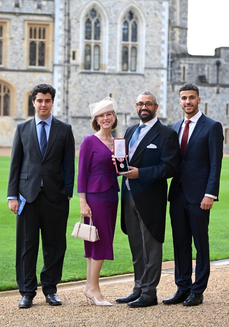 Rupert, Susana, Sir James Cleverly and Freddie. // Men and women from a wide variety of fields and occupations flock to Windsor Castle to be royally awarded., Credit:Tony Kershaw / Avalon