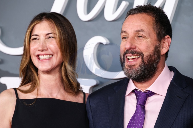 HOLLYWOOD, LOS ANGELES, CALIFORNIA, USA - NOVEMBER 11: American actress and former model Jackie Sandler and husband/American actor and comedian Adam Sandler arrive at the Los Angeles Premiere Of Netflix's 'Jay Kelly' held at The Egyptian Theatre Hollywood on November 11, 2025 in Hollywood, Los Angeles, California, United States., Credit:Xavier Collin / Avalon