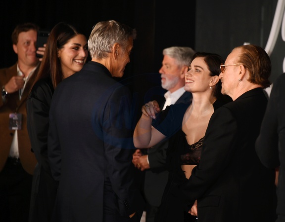 LOS ANGELES, CALIFORNIA - NOVEMBER 11: George Clooney, Eve Hewson and Bono at the Los Angeles premiere of Netflix's "Jay Kelly" at The Egyptian Theatre Hollywood on November 11, 2025 in Los Angeles, California., Credit:Jeffrey Mayer / Avalon