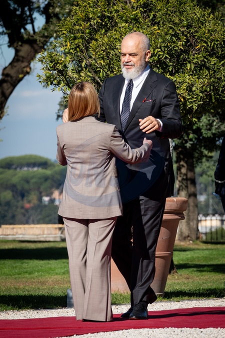 Italian Prime Minister Giorgia Meloni receives the Albanian Prime Minister Edi Rama at Villa Doria Pamphilj in Rome, Italy on 13 November 2025.