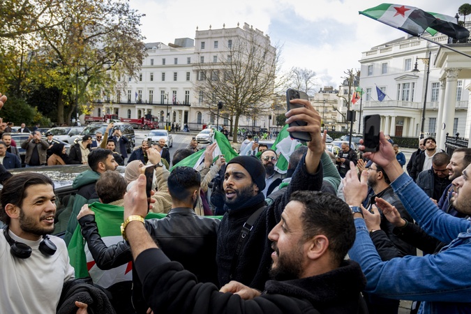 Syrian Foreign Minister Asaad al-Shaibani made his first official visit to the United Kingdom, marking the reopening of the Syrian Embassy in London after its closure in 2011. The visit included a flag-raising ceremony led by the foreign minister, symbolising the restoration of diplomatic presence and renewed ties between Syria and the UK., Credit:Zak Irfan / Avalon
