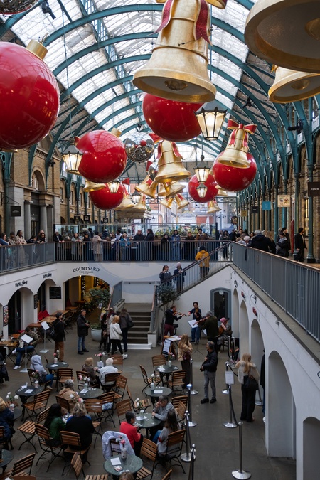 Christmas decorations at Covent garden market. West end of London near Covent Garden area. England.