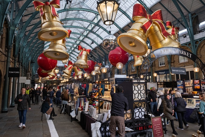 Christmas decorations at Covent garden market. West end of London near Covent Garden area. England.
