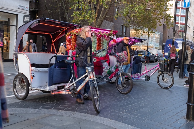 Rickshaws parked at Long Acre by Covent Garden underground station.West end. London. United Kingdom. 12 November 2025, Credit:Mark Fairhurst / Avalon