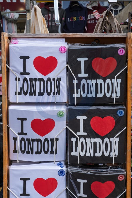 "I love London" T shirts on sale at Covent garden. West end of London near Covent Garden area. England.