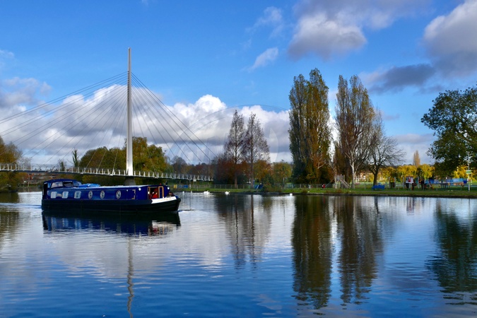 Blue skies above The River Thames on a sunny, autumnal afternoon by the river at Christchurch Meadows in Caversham., Credit:Geoffrey Swaine / Avalon