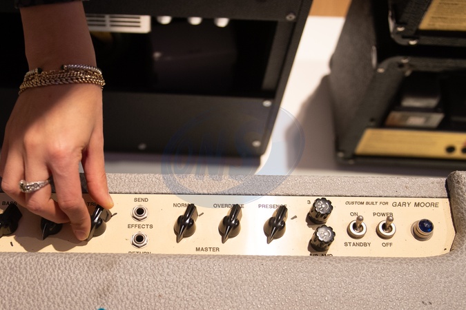 Staff members hold An early 1990s Soldano Custom Combo Amplifier (est. £1, 800 - £2, 500) and owned by Gary Moore as part of Bonhams The Gary Moore Collection: The Final Encore Sale which is to go on Auction on 20 November 2025 - Bonhams, London, England, UK on Thursday 13 November, 2025., Credit:Justin Ng / Avalon