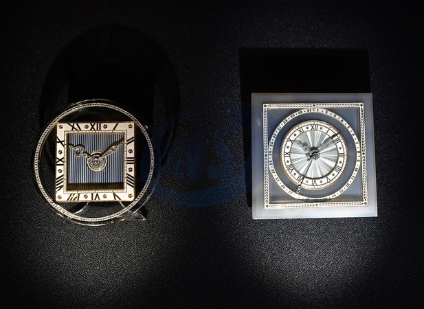 The exhibition "Cartier and the Myth at the Capitoline Museums" is on display at the Palazzo Nuovo until March 15, 2026. This is the first time the Palazzo Nuovo has hosted a temporary exhibition. Table clock, 1918; calendar clock, 1913. Rome, Nov 13th 2025, Credit:Mimmo Frassineti/AGF / Avalon