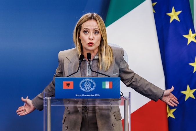 Villa Pamphili, Statements at the end of the Italy-Albania Intergovernmental Summit. Pictured is the Prime Minister Giorgia Meloni. Rome, Italy 13 November 2025, Credit:Francesco Fotia / Avalon