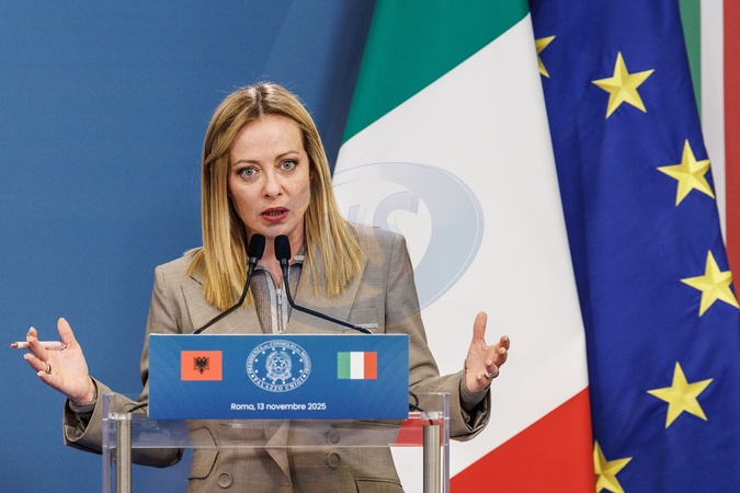 Villa Pamphili, Statements at the end of the Italy-Albania Intergovernmental Summit. Pictured is the Prime Minister Giorgia Meloni. Rome, Italy 13 November 2025, Credit:Francesco Fotia / Avalon