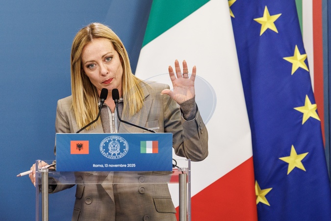 Villa Pamphili, Statements at the end of the Italy-Albania Intergovernmental Summit. Pictured is the Prime Minister Giorgia Meloni. Rome, Italy 13 November 2025, Credit:Francesco Fotia / Avalon