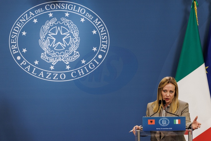 Villa Pamphili, Statements at the end of the Italy-Albania Intergovernmental Summit. Pictured is the Prime Minister Giorgia Meloni. Rome, Italy 13 November 2025, Credit:Francesco Fotia / Avalon