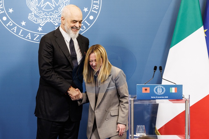 Villa Pamphili, Statements at the end of the Italy-Albania Intergovernmental Summit. Pictured are Prime Minister Giorgia Meloni and Albanian Prime Minister Edi Rama. Rome, Italy 13 November 2025, Credit:Francesco Fotia / Avalon