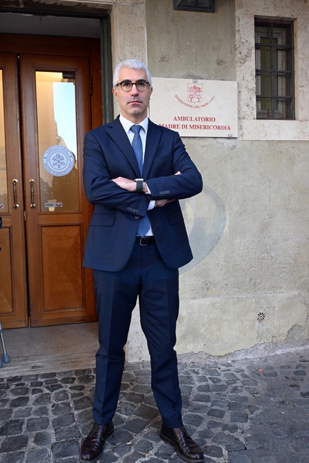 Colonnade in St. Peter's Square. Jubilee of the Poor. Mother of Mercy Clinic, a facility of the Dicastery for the Service of Charity, which offers free healthcare to those living in poverty, marginalization, or difficult situations. Pictured is Massimo Ralli, director of the Health Center. Vatican city, Italy 13 November 2025, Credit:Maria Laura Antonelli / Avalon