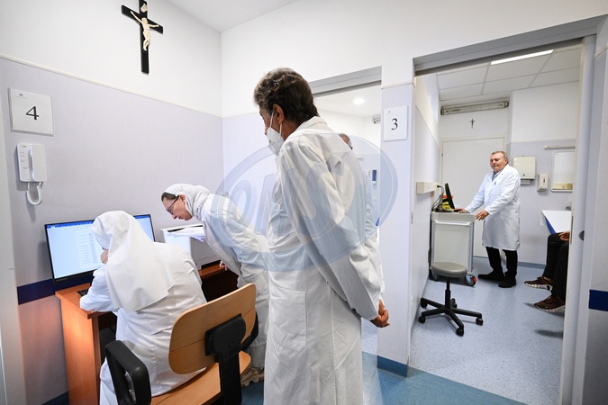 Colonnade of St. Peter's Square. Jubilee of the Poor. Mother of Mercy Clinic, a facility of the Dicastery for the Service of Charity, which offers free healthcare to those living in poverty, marginalization, or difficult situations. Pictured is a volunteer doctor. Vatican city, Italy 13 November 2025, Credit:Maria Laura Antonelli / Avalon