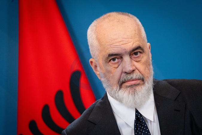 Italian Prime Minister Giorgia Meloni and Albanian Prime Minister Edi Rama address a press conference after the 1st Italy-Albania Intergovernmental Summit at Villa Doria Pamphilj in Rome, Italy, on 13 November 2025.