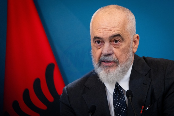 Italian Prime Minister Giorgia Meloni and Albanian Prime Minister Edi Rama address a press conference after the 1st Italy-Albania Intergovernmental Summit at Villa Doria Pamphilj in Rome, Italy, on 13 November 2025.
