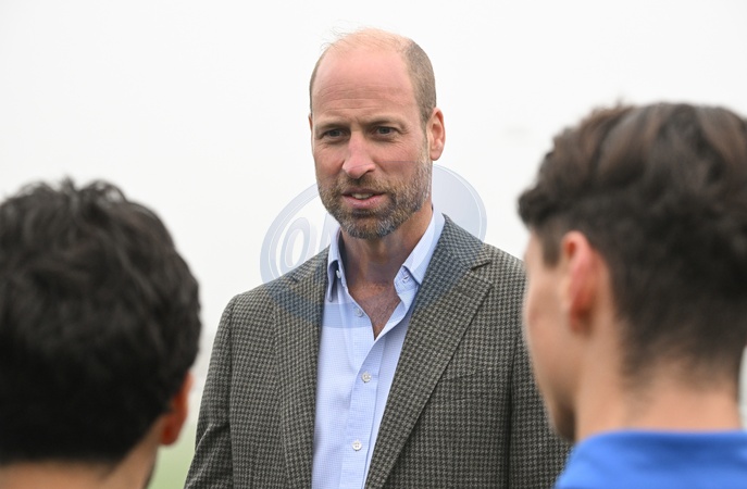 Prince William, Prince of Wales, Duke of Cornwall speaks with players from the youth and adult teams taking part in training during his visit to Mousehole AFC, where he opened a new access road to the club's ground and facilities on November 13, 2025 in Mousehole, England., Credit:Avalon.red / Avalon