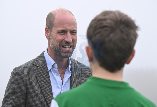 Prince William, Prince of Wales, Duke of Cornwall speaks with players from the youth and adult teams taking part in training during his visit to Mousehole AFC, where he opened a new access road to the club's ground and facilities on November 13, 2025 in Mousehole, England., Credit:Avalon.red / Avalon