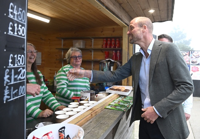Prince William, Prince of Wales, Duke of Cornwall smiles as he shakes hands with staff during his visit to Mousehole AFC, where he opened a new access road to the club's ground and facilities on November 13, 2025 in Mousehole, England., Credit:Avalon.red / Avalon