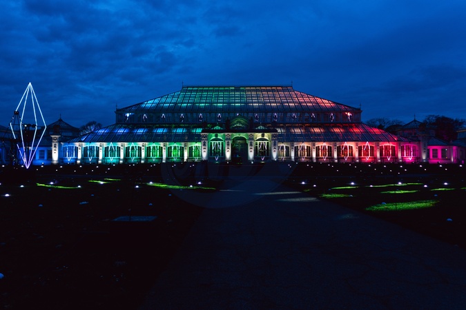 Christmas at Kew returns for its thirteenth year, illuminating Kew Gardens’ after-dark landscape with seasonal favourites and eight UK-debut installations. Highlights include a new display on the Palm House Pond, a spectacular Temperate House light show,