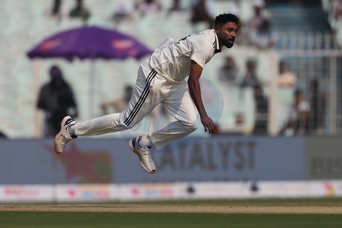 Mohammed Siraj of India balling during the IDFC First Bank Test match day 1 India vs South Africa at Eden Gardens, Kolkata, India, 14th November 2025, Credit:Shubhajit Roy Karmakar/News Images / Avalon