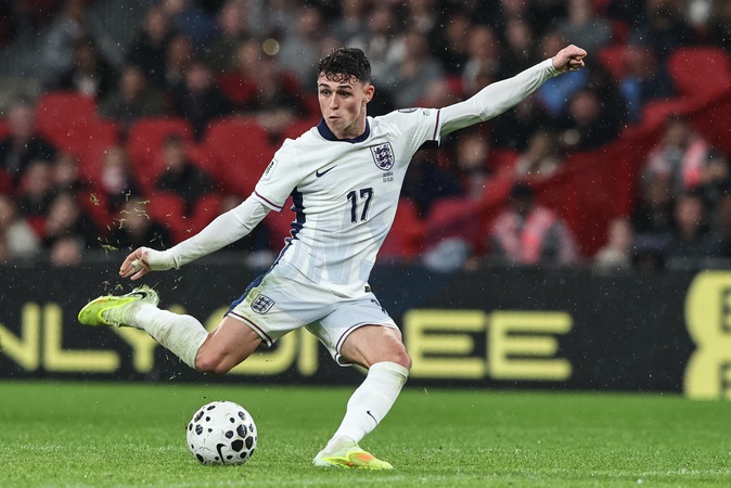 Phil Foden of England shoots on goal during the FIFA World Cup Qualifiers round 9 match England vs Serbia at Wembley Stadium, London, United Kingdom, 13th November 2025, Credit:Ae Cosgrove/News Images / Avalon