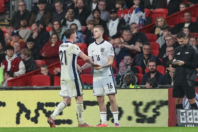 Elliot Anderson of England is substituted for Adam Wharton of England during the FIFA World Cup Qualifiers round 9 match England vs Serbia at Wembley Stadium, London, United Kingdom, 13th November 2025, Credit:Ae Cosgrove/News Images / Avalon