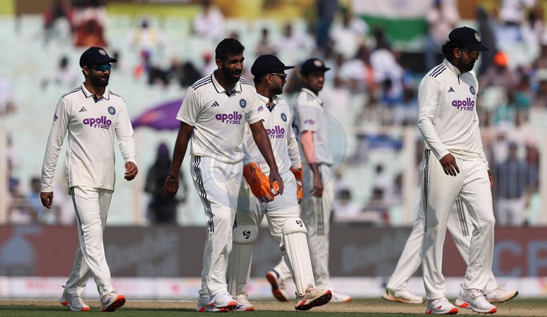 Jasprit Bumrah of India , KL Rahul of India , Ravindra Jadeja of India , Rishabh Pant (Vice Captain) of India during the IDFC First Bank Test match day 1 India vs South Africa at Eden Gardens, Kolkata, India, 14th November 2025, Credit:Shubhajit Roy Karmakar/News Images / Avalon