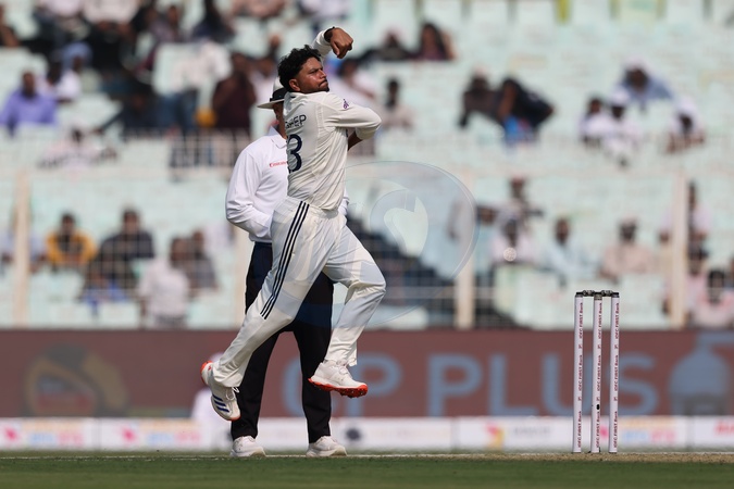 Kuldeep Yadav of India during the IDFC First Bank Test match day 1 India vs South Africa at Eden Gardens, Kolkata, India, 14th November 2025, Credit:Shubhajit Roy Karmakar/News Images / Avalon