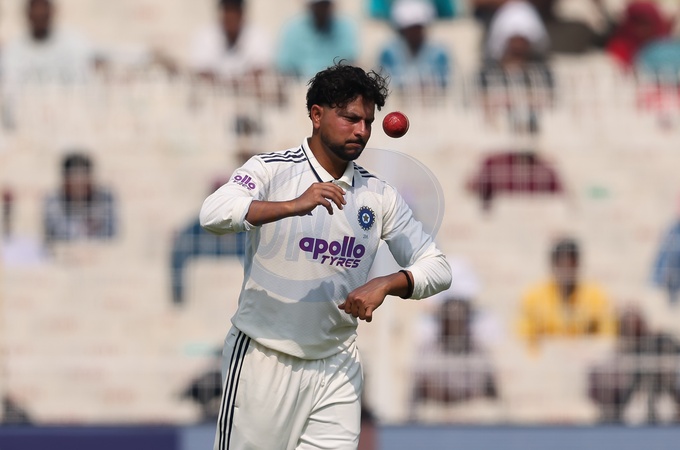 Kuldeep Yadav of India during the IDFC First Bank Test match day 1 India vs South Africa at Eden Gardens, Kolkata, India, 14th November 2025, Credit:Shubhajit Roy Karmakar/News Images / Avalon